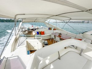 Externally, the yacht is equally impressive, boasting a spectacular flybridge with ample seating and lounging areas, a generously sized cockpit for alfresco dining, and expansive sunbathing space on the bow, ensuring plenty of options for outdoor enjoyment.