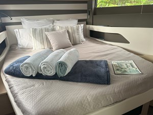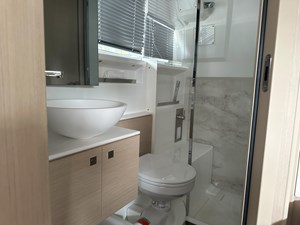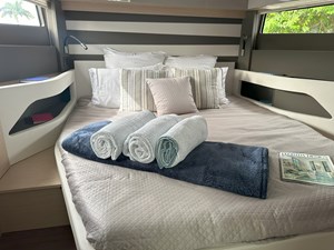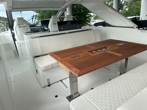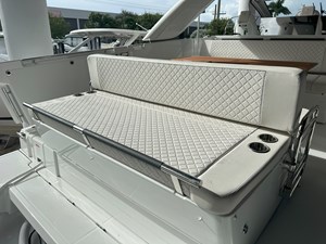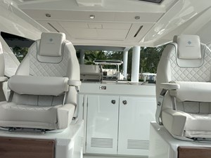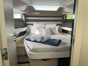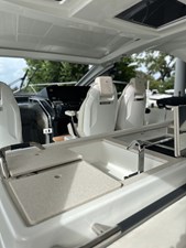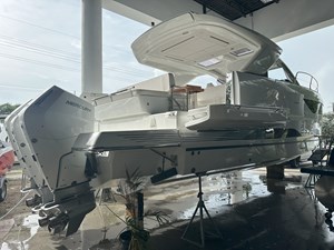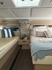 The 2024 Jeanneau DB 43 is a luxurious and high-performance outboard-powered cruiser that redefines the dayboat experience. With an overall length of 44'5" and a beam of 12'6", it offers a spacious and stylish platform for both relaxation and adventure. Powered by triple Mercury 350 HP outboard engines, ensuring thrilling performance on the water. Designed by Michael Peters, the hull provides exceptional seakeeping abilities and comfort during cruising. The exterior features a spacious cockpit with a modular table accommodating up to eight guests, a centrally located galley island, and deployable side terraces that extend the swim platform, creating a "Beach Club" atmosphere. Below deck, the interior boasts two cabins: a forward master suite with an island berth and a full-beam guest cabin, both offering luxurious finishes. The head compartment includes a separate shower stall, enhancing onboard comfort.