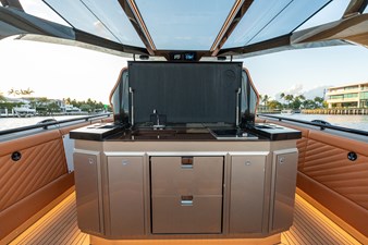 Al fresco dining is catered for thanks to a well-equipped galley plus lots of storage space, a sink and refrigerators/wine coolers throughout the yacht.
