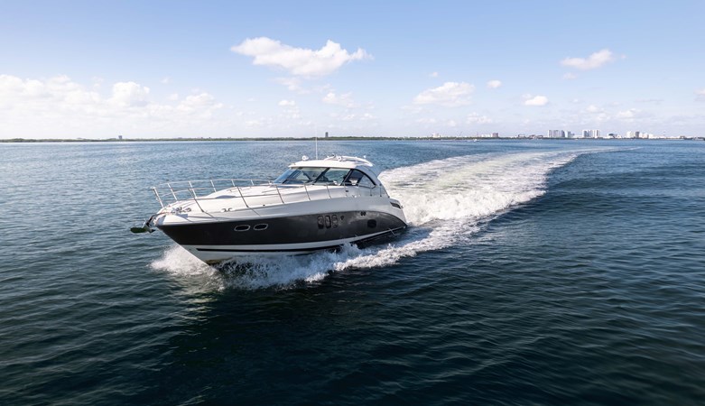 This 540 Sundancer is equipped with the upgraded 715HP QSM11's with SkyHook position-keeper. She is a highly optioned model featuring a hydraulic swim platform, joystick controls, AC in her exterior cockpit, and a full array of upgraded navigation equipment.