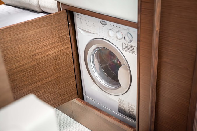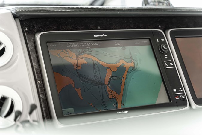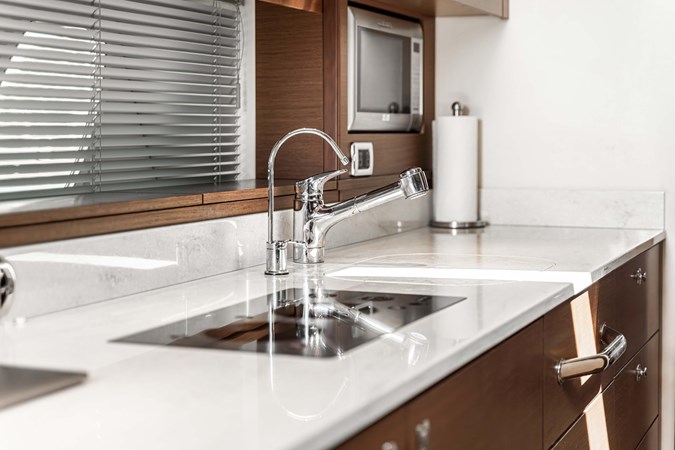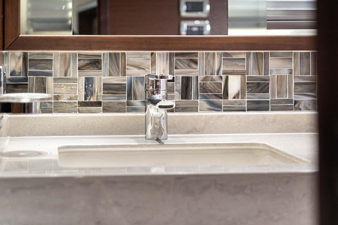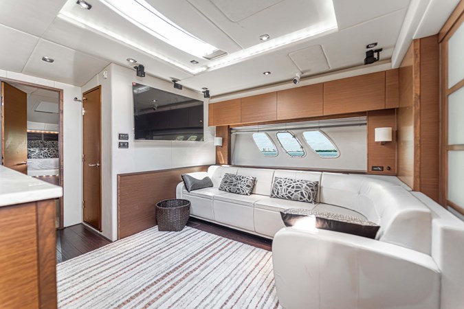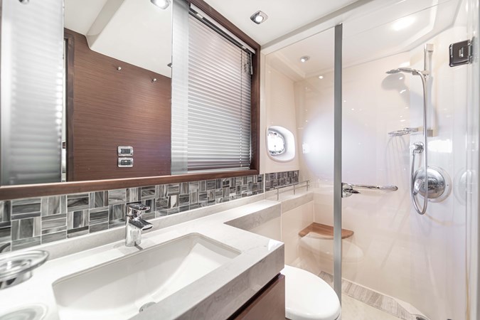 Her stunning and modern interior boasts a massive salon and open galley, full-beam master and forward VIP cabin- each with a private head and separate shower. Her VIP cabin head also doubles as a useful day head, for convenient access for all your family and guests.