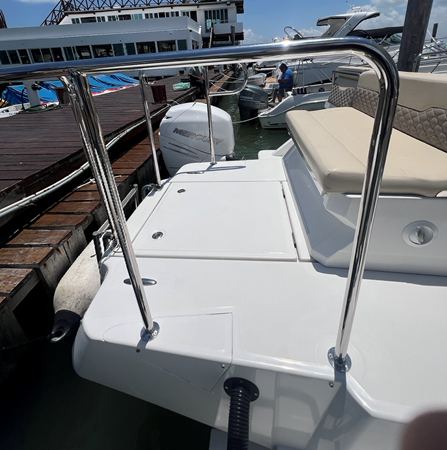 - Custom built PVC rub rail with 316 stainless-steel insert offering all round protection
