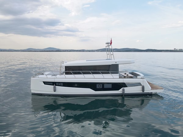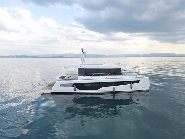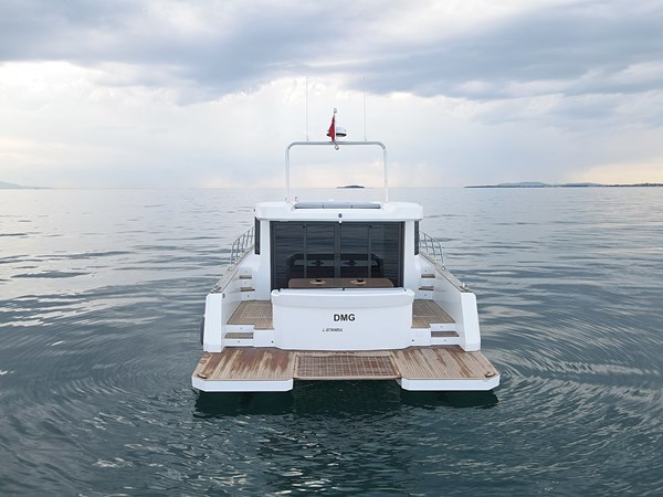 Introducing the DG Yachts Cat43, a remarkable 43-foot Power Catamaran that embodies the pinnacle of luxury cruising and intelligent design. Meticulously crafted with precision, its one-piece catamaran hull ensures superior stiffness, reinforced with carbon fiber for enhanced durability. Experience stability, spaciousness, and outstanding performance, all complemented by expansive panoramic windows that invite the stunning sea views indoors. Featuring four generously appointed double cabins, 2 X 250 HP Yanmar engines, and measuring 13.30 meters in length with a 5.70-meter beam, the DG Yachts Cat43 stands as the ideal choice for enthusiasts seeking the perfect fusion of comfort and style.