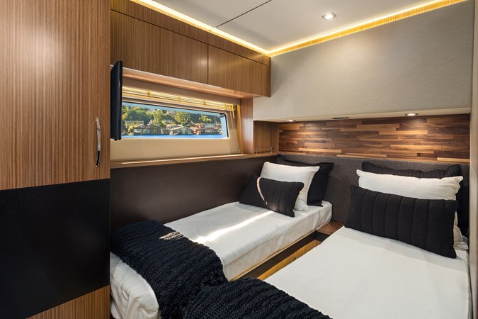 DOUBLE EAGLE offers a comprehensive blend of design, function, layout, performance, reliability, and safety. The spacious and inviting floorplan features an open main deck with tasteful custom furnishings and decor. Well-appointed accommodations include a full-beam master stateroom, VIP cabin, and guest cabin. The galley boasts top-of-the-line appliances and ample storage space. The vessel is powered by reliable Triple Cummins QSC 8.3 Marine Diesel Main Engines and features exterior spaces perfect for relaxation. The yacht also comes equipped with an integrated electrical system and cutting-edge electronics suite for navigation and communication.