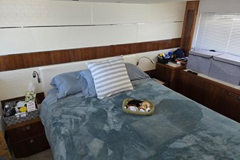 - Master Stateroom: This is a full-beam stateroom located midships, featuring a queen-sized berth (bed), hanging lockers, a vanity/desk, and an en-suite bathroom. It is designed with large, triple-mullioned side windows that provide abundant natural light.