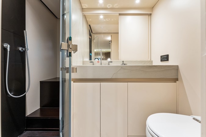 The Azimut Magellano 25 Metri features an elegant and timeless profile. Cleverly thought out exterior spaces include a swim platform that features an electrically operated deck extension that can either create an infinity terrace or allow for easy tender access.