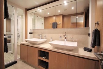Powered by dual 1,600 HP Caterpillar C32 engines, EUPHORIA can achieve speeds in excess of 21 knots, while also offering a comfortable cruising range of 10-12 knots for longer voyages. This vessel has a generous fuel capacity of 15,500 litres, providing ample range for those seeking to explore remote islands, coastlines, and hidden coves without frequent refuelling stops. Her fuel efficiency, paired with a top-notch engineering design, allows owners to enjoy extensive cruising capabilities without sacrificing comfort or performance.