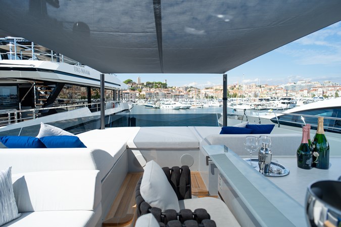 sporty yet unmistakably marine character. With 86 sqm of expertly distributed outdoor space across the bow and stern,
