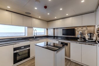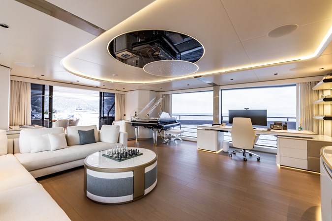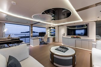Her interior is light, contemporary and highly functional, with floor-to-ceiling windows which fill the interior with natural light. Social areas are designed for both private ownership and charter operation, with natural guest flow and discreet service routes supporting efficient crew operation.