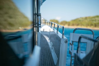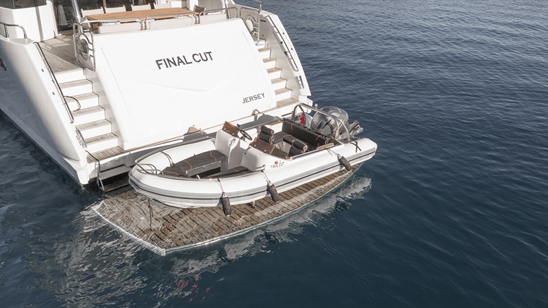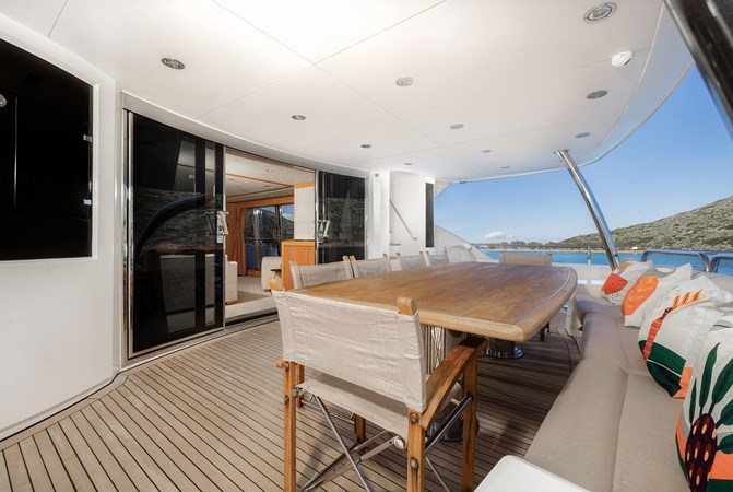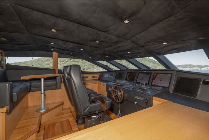 Her navigation package includes Furuno GPS, Simrad autopilot and depth instruments, along with a Tracvision satellite system. The galley is fitted with premium Miele appliances and Subzero refrigeration units, ensuring high standards for extended stays onboard. Additional features such as Dometic air conditioning, a Bose entertainment system, and a Besenzoni passerelle further elevate the onboard experience.