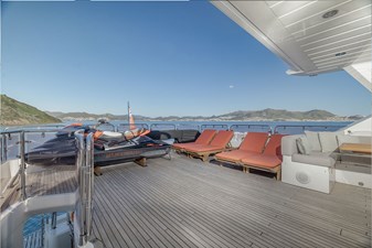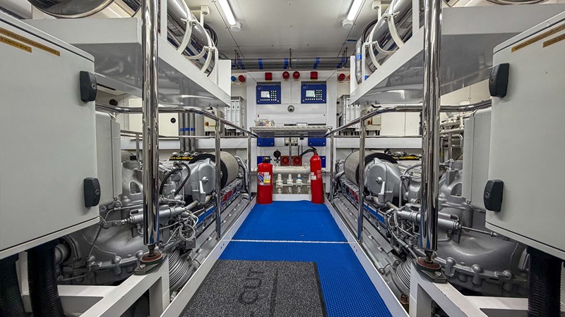 Powered by twin MTU 16V2000-CR engines, she reaches a top speed of approximately 25 knots and cruises comfortably at 18 knots. Equipped with ABT TRAC bow and stern thrusters, she offers excellent maneuverability. The TRAC stabilizer system significantly improves comfort both underway and at anchor.