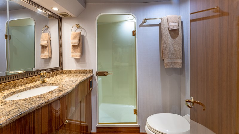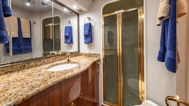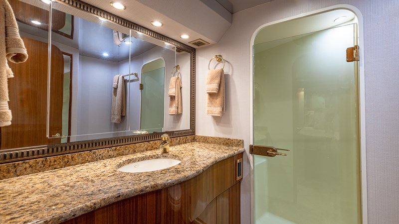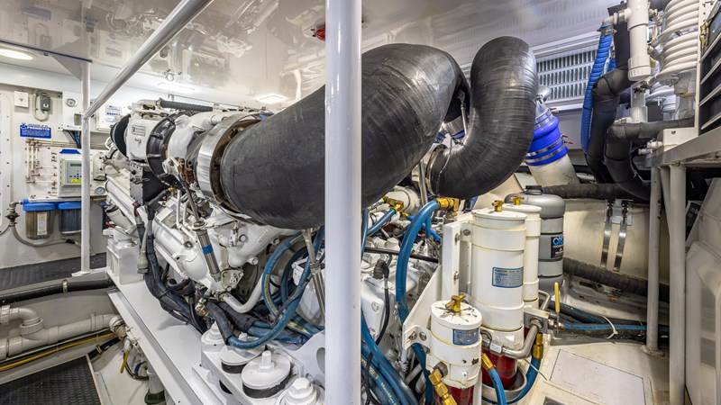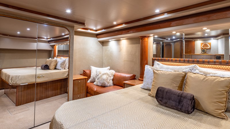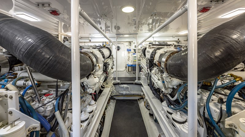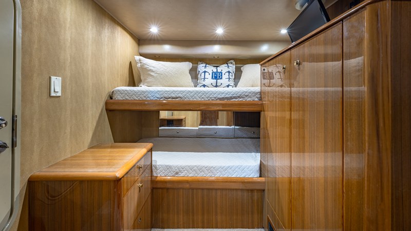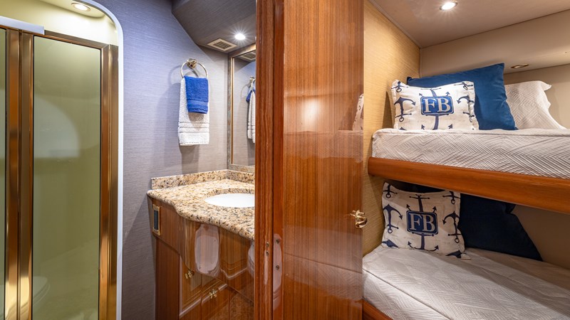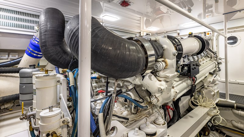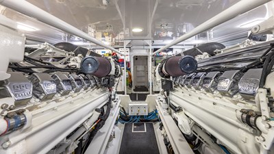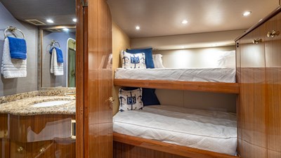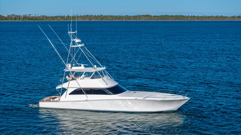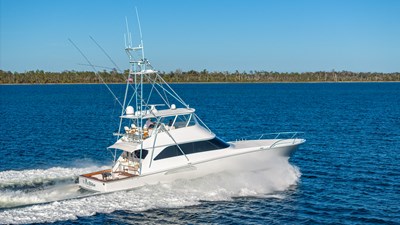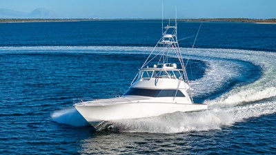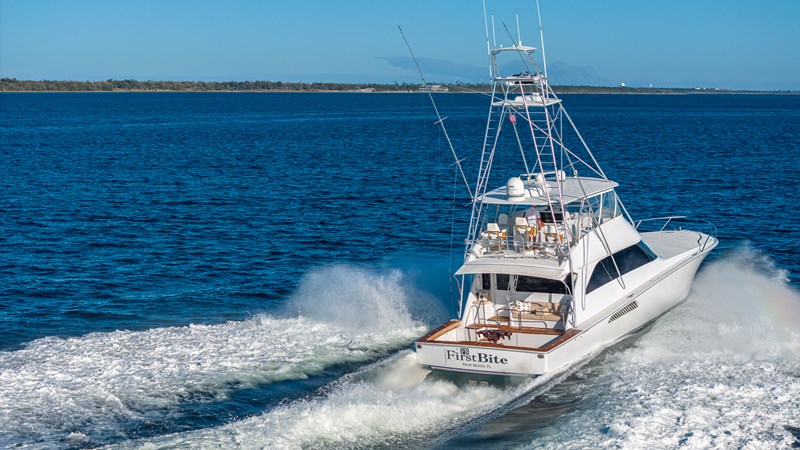 FIRST BITE is a 2004 74' convertible Viking with a model year of 2005. She has a fiberglass hull and maximum speed of 29 knots and cruising speed of 25 knots. She has x2 MTU Diesel engines with 2000 Hp. She has a hydraulic steering system and new batteries. Domestic 2 chiller air-conditioning system.