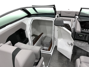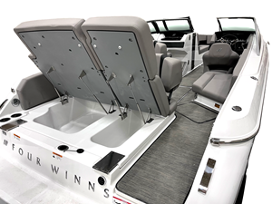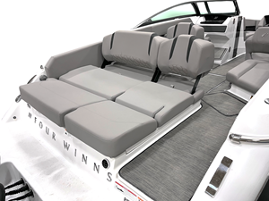 The 2026 Four Winns H6 is a premium bowrider that exemplifies modern design and performance. Measuring 26 feet 2 inches in length with an 8-foot 5-inch beam, it offers ample space for up to 11 passengers. The H6 features a full center walkthrough and an additional starboard side passage, enhancing accessibility and ease of movement on board. Its L-shaped cockpit provides generous seating, complemented by a convertible aft lounger and abundant storage for water toys and gear. The helm is equipped with ergonomic enhancements, including back-lit switches, an integrated stereo system, and a wireless phone charger, ensuring comfort and convenience for the captain. Powered by a maximum of 350 horsepower, the H6 is designed for both leisurely cruises and active water sports. With its sleek lines and thoughtful features, the Four Winns H6 stands out as a versatile and stylish choice for boating enthusiasts.