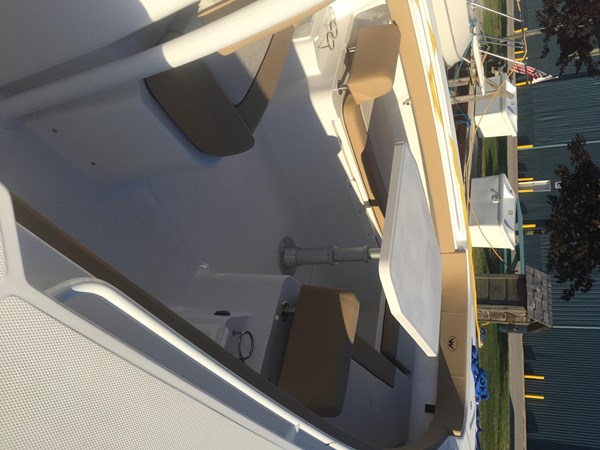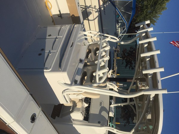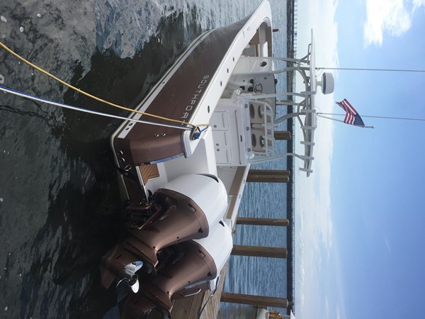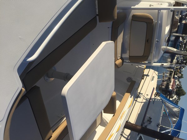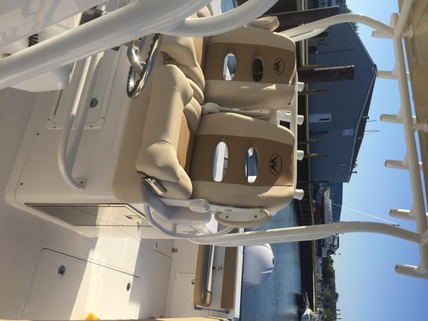 The 33 Southport has a large birth under the center console and a stand up wet head.