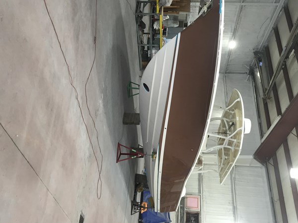 Custom metallic bronze paint, hull and engines and white bottom paint
