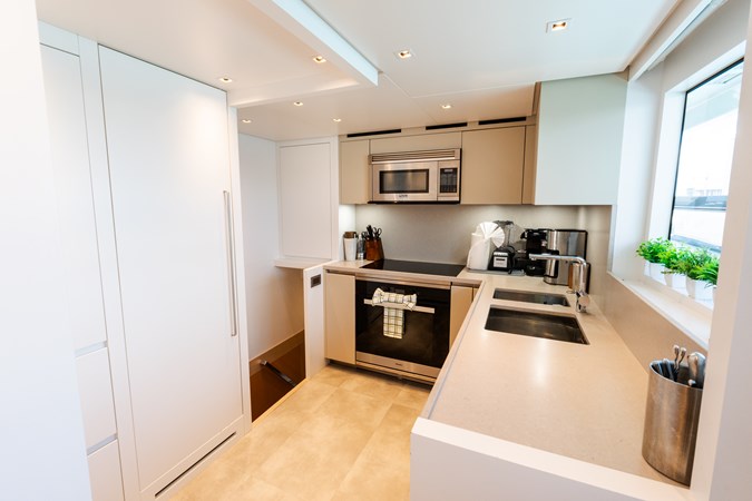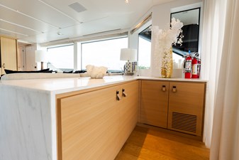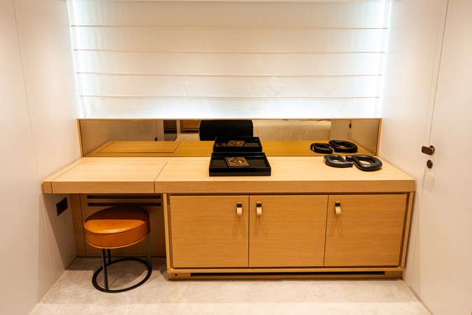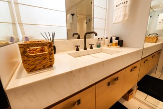 Delivered in 2021 by Sanlorenzo, GATSBY is a striking 96' SL96A motoryacht with interiors by Marty Lowe. Accommodating up to eight guests in four en-suite staterooms—including a full-beam master suite on the main deck with king bed, study, and dressing area—she offers a balance of thoughtful design and comfort. Generous outdoor spaces include a sunlit flybridge with wet bar, aft deck dining, foredeck sunpads, a hydraulic swim platform, and a tender garage fully equipped with toys. Powered by twin MTU 16V2000 M86 engines reaching speeds up to 28 knots and stabilized both underway and at anchor, GATSBY delivers a composed, responsive cruising experience—equally suited for extended passages or effortless entertaining.