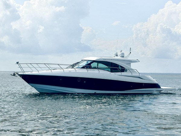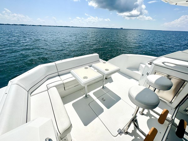 Low hour twin Volvo D6 IPS 435 hp engines (@ 400 hours) with Joystick docking, Garmin Electronics Suite, (2) 12-inch color screen Navigational/HD Radar/sounder units, plus 9" Garmin screen dedicated to engine data. Hydraulic swim/dinghy platform, SureShade power cockpit shade (new in 2024). Cockpit grill, sink, refrigerator, Ice Maker, (2) removable Barstools, Aft glass wall opens for direct access into the Galley, making this a great boat for entertaining family and friends. Huge power sunroof, upgraded sound system, Flat Screen HDTV with SAT and Over-air Digital TV antennas. 2 stateroom / 2 head layout. Excellent visibility from the salon/galley/helm with huge windows and a fully Heated/air-conditioned interior.