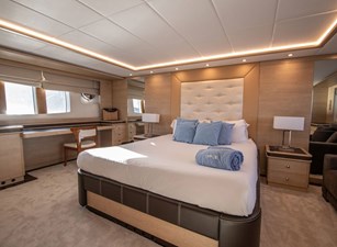 On deck, the expansive flybridge is a highlight of the yacht, featuring generous sunbathing areas, a dining space, several seating areas and a full wet-bar making it the perfect setting for relaxation and entertainment.