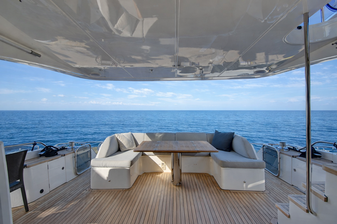 On the flybridge, GRAND CRU offers a second helm, extensive lounging areas, a wet bar, coolbox, BBQ, and generous storage—perfect for entertaining or enjoying long days at sea.