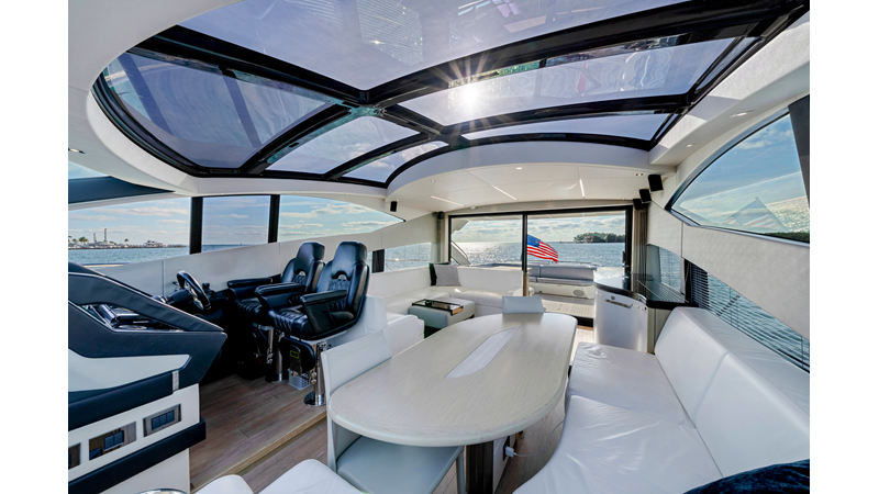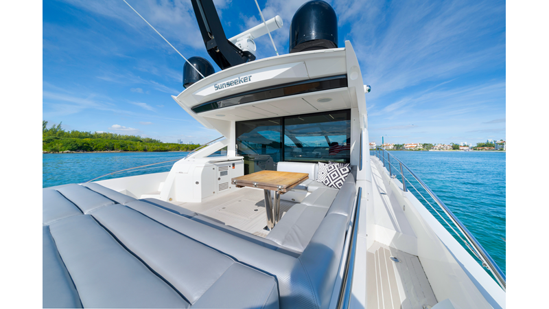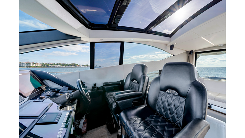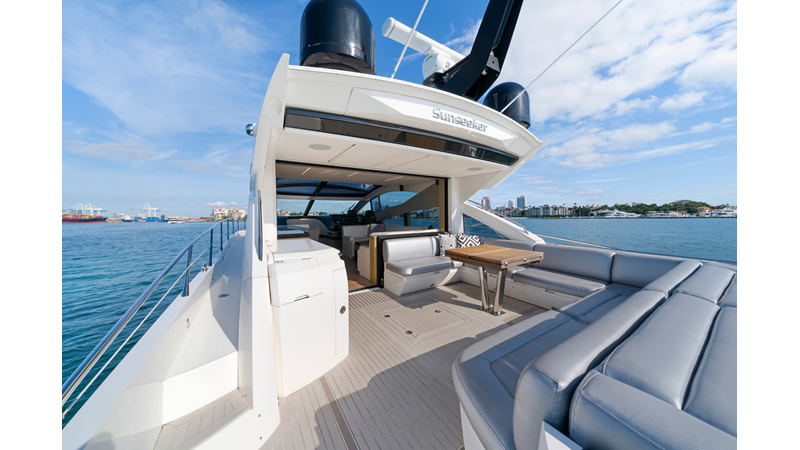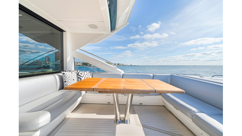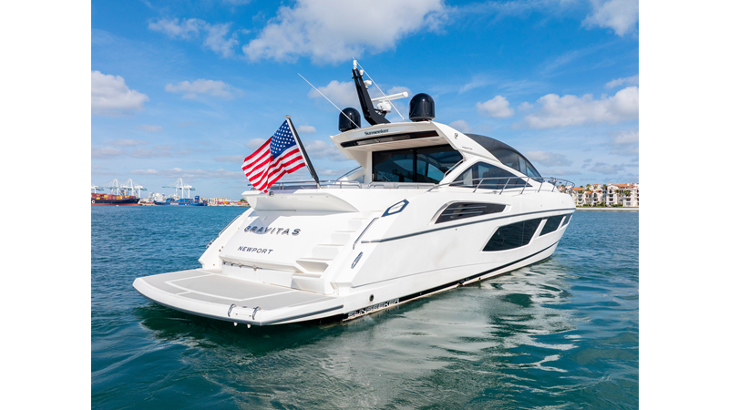 For those seeking style, performance, and a flawless Sunseeker interior, this Predator 68 stands out. Effortless to show — and ready for her next discerning owner. The Predator 68 offers aggressive styling, powerful performance of up to 36 knots, and luxurious light-filled interiors. With a large sunroof, frameless windows, a hydraulic swim platform, tender garage, and premium finishes, she blends indoor/outdoor living while delivering the speed, style, and comfort ideal for effortless entertaining. New exterior upholstery and M1 engine services done.
