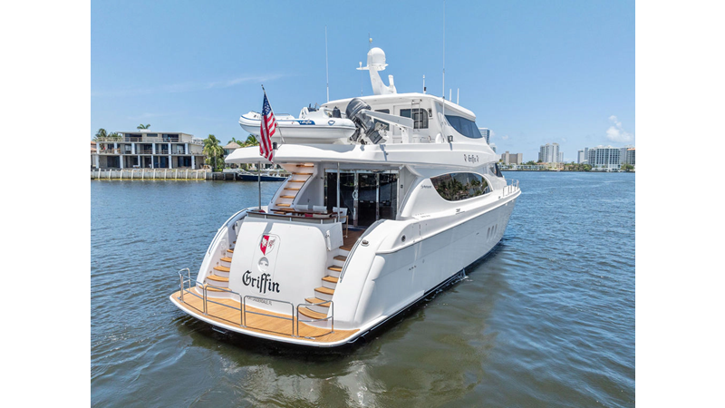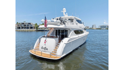 ‘Griffin’ is a 2013 80’ Hatteras enclosed flybridge motor yacht. This model is one of the most popular Hatteras has ever built. Hatteras Yachts has a strong reputation for building high quality, reliable yachts. This 80’ is no exception. She has an elegant, classic design and a solid fiberglass deep ‘V’ hull offering a smooth, stable ride. She has an attractive presence both at the dock and on the water.