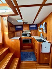 Teak hull ceilings in salon and master; cedar hull ceilings in galley