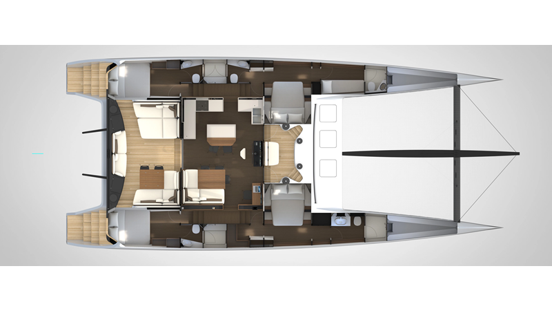 The Gunboat 68 Series also offers a Voyager configuration, optimized for extended voyages. Photos shown are the Gunboat 68 DASH.