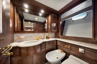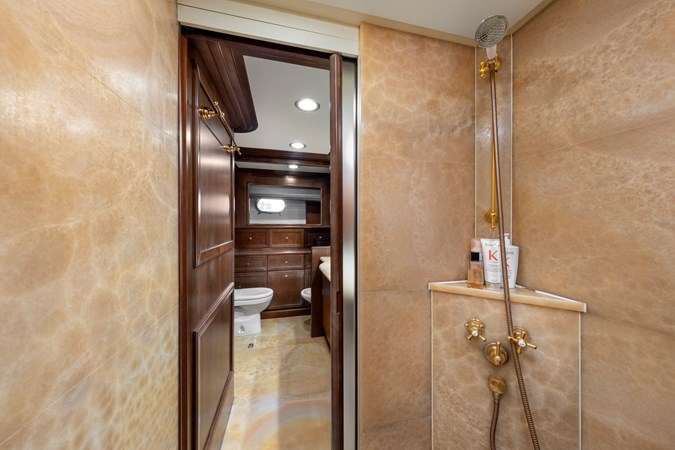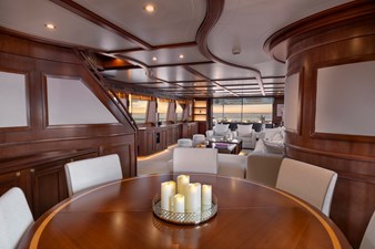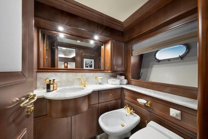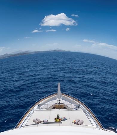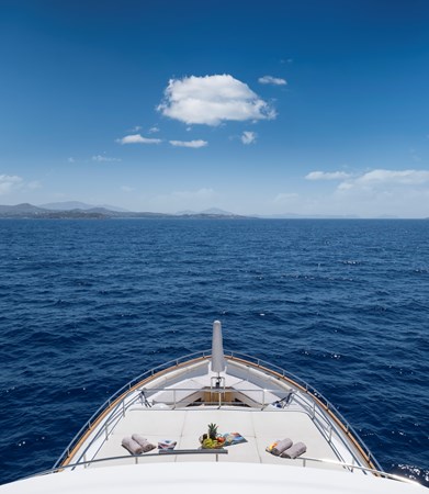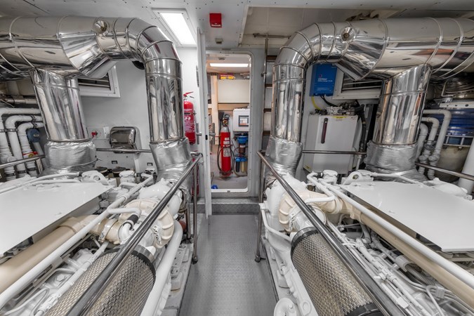 The 189GT yacht’s top speed is 15 knots and cruising speed is 12 knots under twin 1,360hp MAN diesels. Range at 10 knots is 1,500 nautical miles.