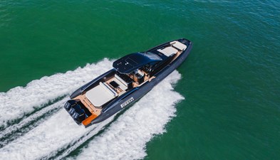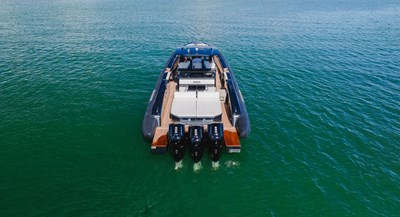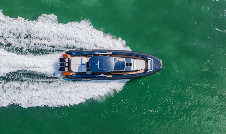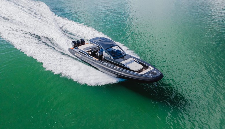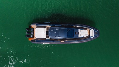 The PIRELLI P50 is the flagship model of the Sacs TecnoRib walkaround series, delivering a bold combination of Italian craftsmanship, cutting-edge technology, and raw power. At 50 feet in length with a 15'4" beam, this maxi-RIB is designed for those who demand both performance and comfort, while the walkaround design ensures seamless movement from bow to stern. Built as the factory’s showboat, HEAVY D features every option including triple Mercury 600hp V12 outboards for speeds in excess of 65mph. Designed by the renowned Mannerfelt Design Team, the PIRELLI P50 embodies sportiness with clean, aero dynamic lines. The exterior features a striking black paint / silvertex cushion color combination paying tribute to the iconic Pirelli Racing Brand.