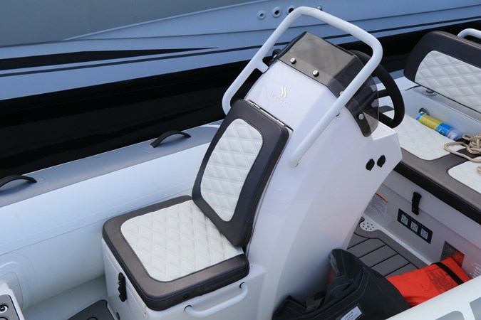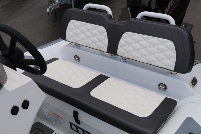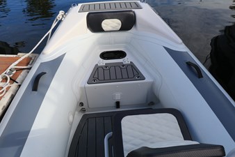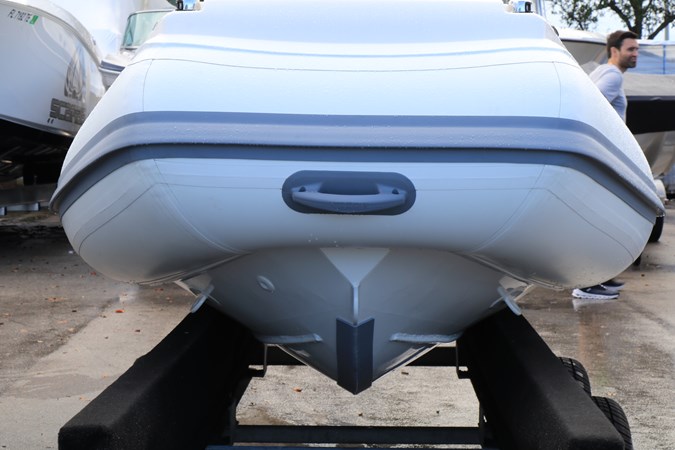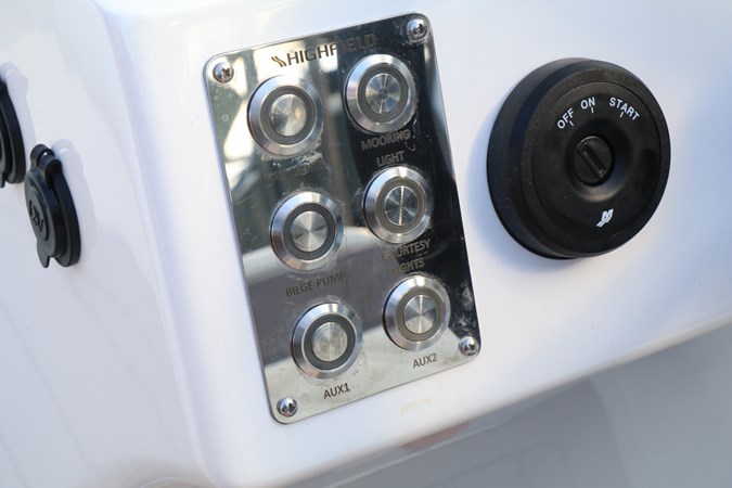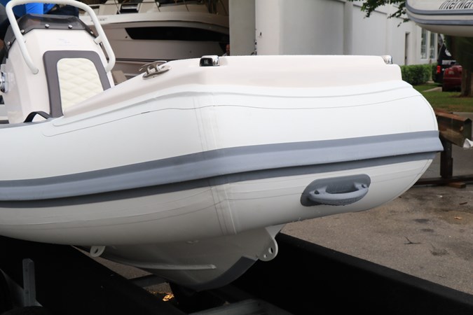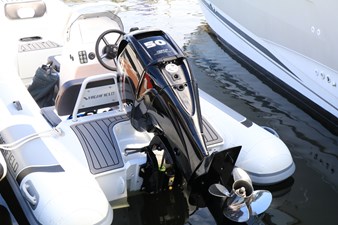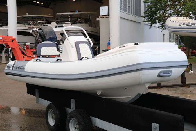 The 2023 Highfield SP390 is a premium 12'10" rigid inflatable boat (RIB) designed for versatility and performance. Built with a high-tensile chromated and powder-coated aluminum hull, it features welded lift strakes, ensuring a stable and dry ride even in challenging conditions. The boat is powered by a 50hp outboard motor and includes an integrated 8-gallon fuel system, making it ideal for use as a luxury tender or for recreational day trips. The deck is finished with EVA brushed foam teak, providing a stylish and durable surface. For storage, the SP390 offers three compartments with hydraulic-assisted lids, and the boat is rated for up to 7 passengers.