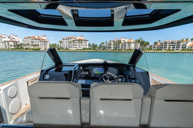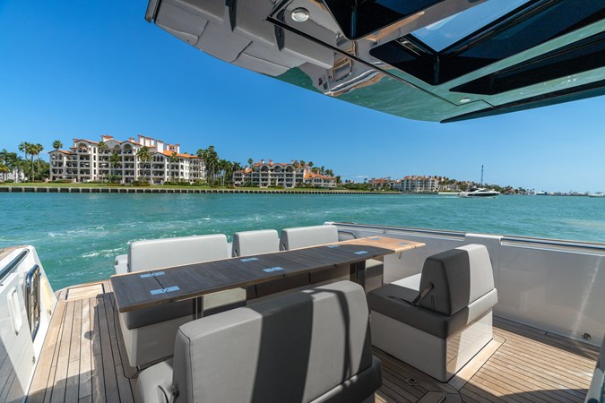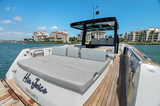 “Hinjuice", is a very lightly used, (200hr) Fjord 44 with all the best factory options the discerning owner would expect: IPS650 Power, Metallic Blue and Chestnut interior color scheme, Teak Decks, Garmin instruments, JL Audio Sound, Joystick control, Generator, Troical AC, Full wet-bar, Electric Bimini, hydraulic bathing platform, storage garage, and folding anchor system, underwater lights and more
