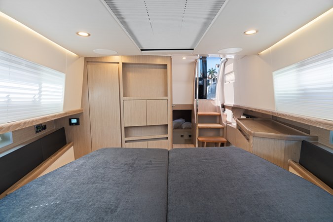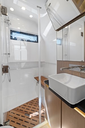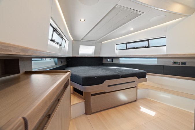 You will feel both invited and impressed each time you enter the owner’s cabin, since it masterfully merges contemporary taste with magnetic elegance. The interior is brightly illuminated by multiple sources of natural light – portlights, a hull window and a skylight with opening hatch. In the en suite head every detail has been carefully considered for the most comfortable living – including a separated shower and shower seat.