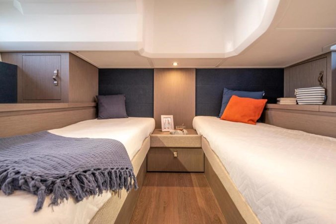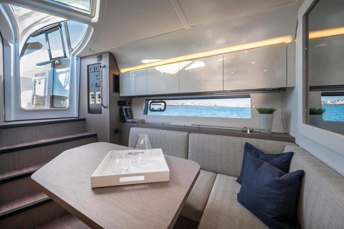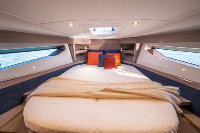 The lower deck is extremely comfortable, making it ideal for cruising and overnights. Apart from the galley and the head, there are two closed-off private cabins, each with beds parallel to the boat’s centerline, offering optimum quality of life on board.