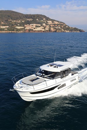 The Jeanneau NC 1095 Coupe is a versatile 34-foot powerboat designed for extended cruising and family adventures. It boasts a spacious layout with three cabins, including a generous owner's suite with ample storage, and a saloon that converts into an additional double berth. The well-equipped galley features a stove, sink, and extensive storage, facilitating onboard dining and entertaining. The helm station offers excellent visibility and includes a sliding door for easy access to the starboard side deck, enhancing docking and maneuvering. Designed for comfort and safety, the NC 1095 Coupe is ideal for those seeking a blend of performance, luxury, and practicality on the water.