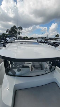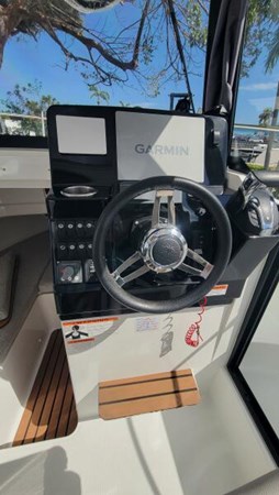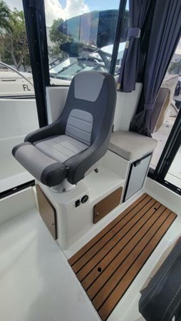 With her contemporary design and distinct personality, the Jeanneau N795 Sport offers true comfort while underway and quality of life on board. Her proven hull, stable and fast, ensures excellent performance. With her adventurous style, this "SUV of the sea" reveals a great multitude of uses - fishing or family cruising. In fishing mode", she features a wide, 3-panel sliding glass door aft, wide side doors, and secure recessed side decks for safe and easy passage between the helm station and the cockpit.