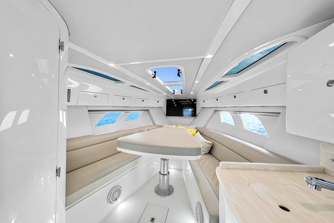 The Intrepid 407 Cuddy seamlessly blends refined luxury with true offshore performance in one sleek, head-turning package. Below deck, accommodations are thoughtfully designed for extended stays, including a private head with separate shower stall, a master berth with a queen bed and hull side windows that fill the space with natural light, and a forward cabin that easily converts into a spacious double berth. On deck, advanced construction and fabrication techniques deliver an exceptionally smooth, dry ride without sacrificing speed or handling.