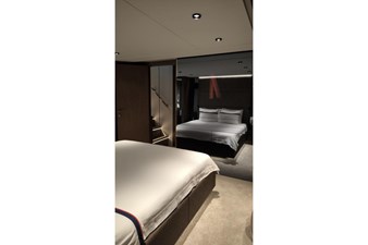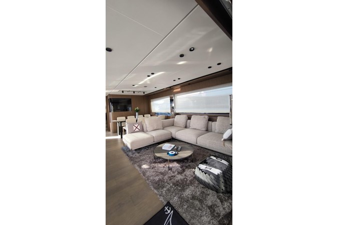 This flybridge yacht, with its streamlined design, sleek lines and sharp styling, satisfies the owner’s every wish in terms of comfort, style, seaworthiness and safety at sea.