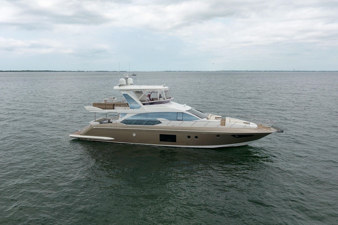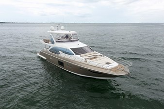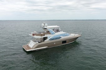 This 2016 Azimut 66 Flybridge features four staterooms, three heads, and crew accommodations. KIKI delivers space, comfort, and performance in equal measure. She blends sleek Italian design with modern construction. From the moment you step aboard, the attention to detail is clear. The aft deck features teak decking, U-shaped seating, and a new granite tabletop comfortably seating 6–8 guests. Color-changing LED lighting and JL Audio sound system create a sophisticated atmosphere, while a hydraulic swim platform with tender storage transforms into a teak beach.
