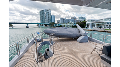 Knot Woke is a 2009 Azimut 85 that has undergone an extensive refit, with over $1M invested to bring her to a fresh, modern standard. During her time in the yard, she received new exterior paint, new teak decking, updated cushions, new salon flooring, as well as new A/C chillers and converters, along with numerous additional upgrades throughout.