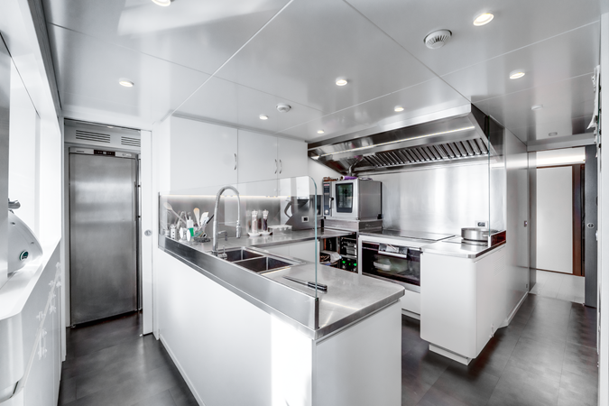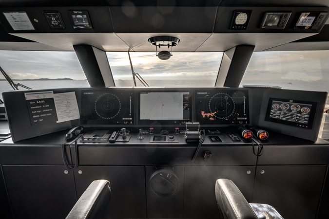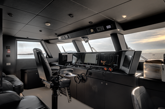 Inside, L.A.U.L exudes contemporary elegance with a soft palette of white, grey, and natural textures. The main saloon offers panoramic views and a seamless transition to a formal dining space for up to twelve guests. Five beautifully appointed staterooms accommodate twelve guests in supreme comfort, including a full-beam master suite on the main deck featuring a private study, walk-in wardrobe, and luxurious marble ensuite.