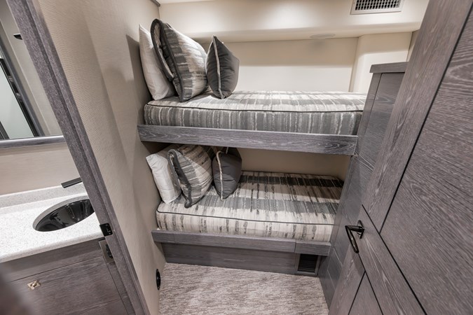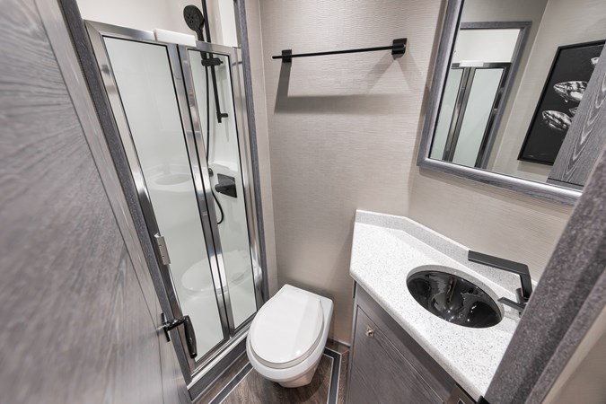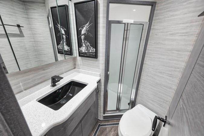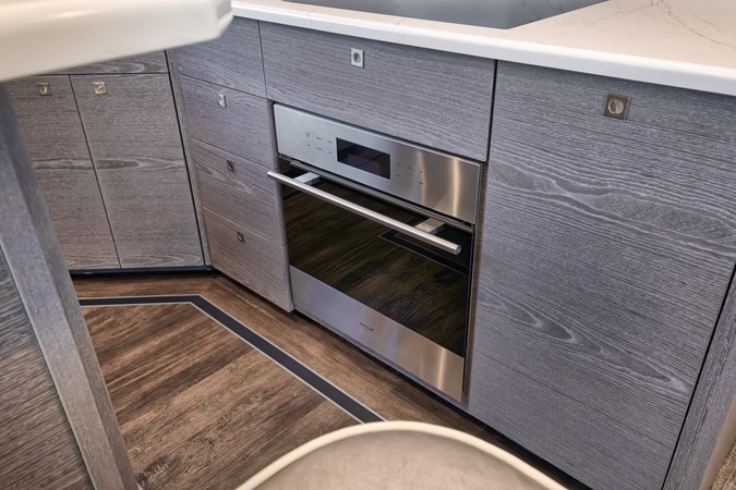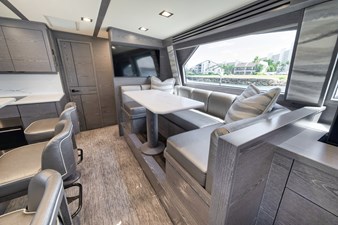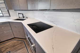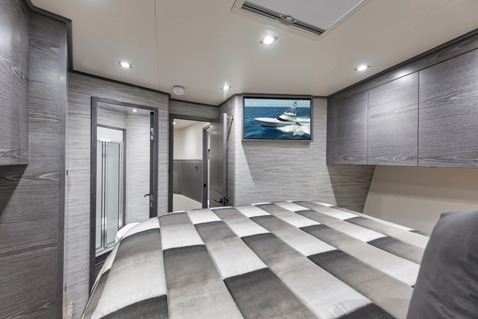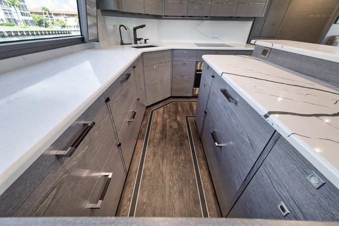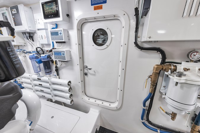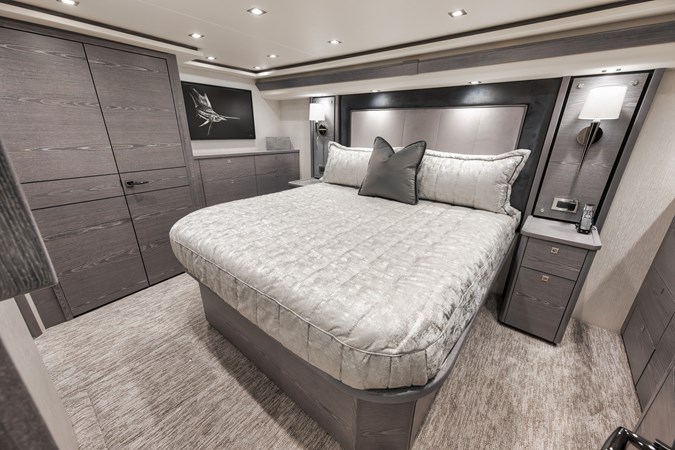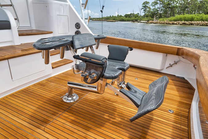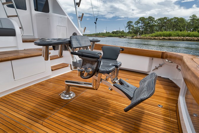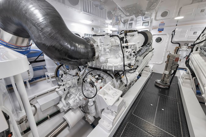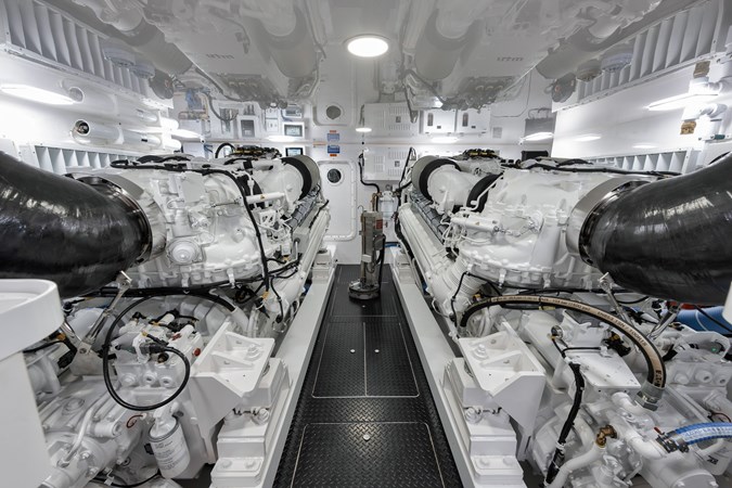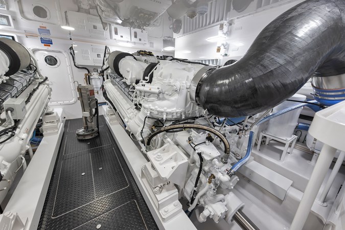 This vessel comes fully equipped with unique features, such as a one-of-a-kind Custom Hull Color (Carolina Grey), an interior adorned in grey wood, and a Grey Faux Teak Package encompassing the Helm Pod, Helm Chairs, toe rail, and transom. The cutting-edge electronics comprise premium Garmin systems, a Furuno Omno Sonar, Starlink connectivity, an extensive underwater light package, and more. In the engine room, the preferred power package includes the MTU M96's, along with numerous customizations like extra fairing on all smooth surfaces, LED lighting for engine bed, upgraded hoses to Blue Silicone, and more.