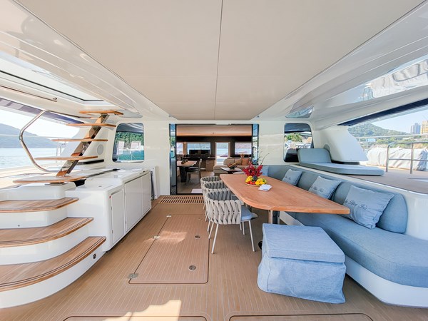Like-new 2023 Lagoon Sixty 7 motor catamaran now for sale in Hong Kong. Built at a state-of-the-art shipyard in Bordeaux, France, the Lagoon 7 is a remarkable blend of luxury, elegance, and functionality, designed to meet the highest standards of modern yachting. Measuring 20.15 meters in length and boasting a massive 10-meter beam, this catamaran provides vast living spaces both inside and out, offering unmatched comfort and panoramic views. Her 4 ensuite cabins provide amazing living spaces for some rest and privacy, making her well-suited for accommodating guests on overnight and weekend stays.