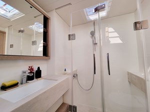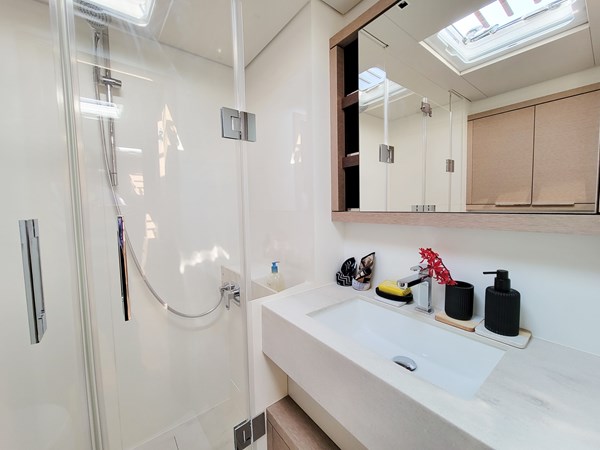 The Lagoon Sixty 7 has a total fuel capacity of 5,500 litres and a water capacity of 1,000 litres, providing substantial autonomy for long-distance cruising.