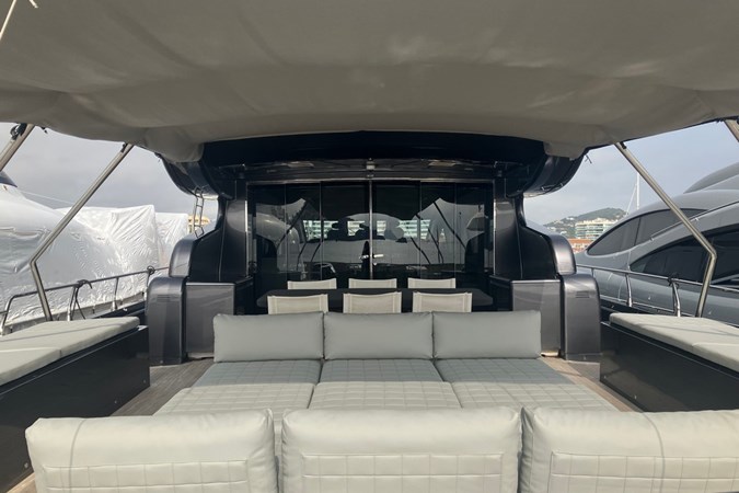 Outdoor Living at Its Best: The expansive outdoor spaces are designed for relaxation and enjoyment. Large sunbathing areas provide the perfect spot to soak up the sun, while the spacious aft cockpit, protected by a custom-made removable bimini top sunshade, offers a comfortable area to unwind with a refreshing drink or dine alfresco.