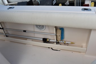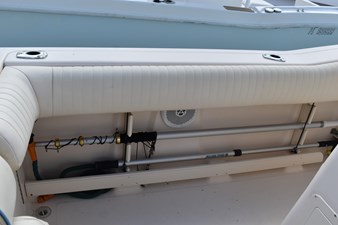 - Upholstery completely updated recently, is in excellent condition as the boat has been stored inside since 2012 Cushioned seating forward & aft with insulated coolers and large storage beneath.