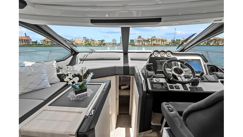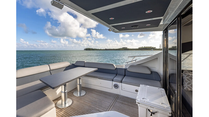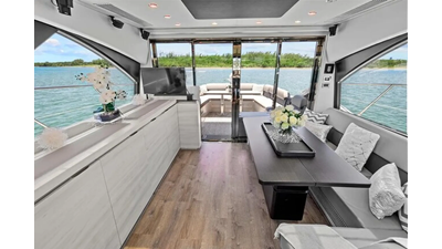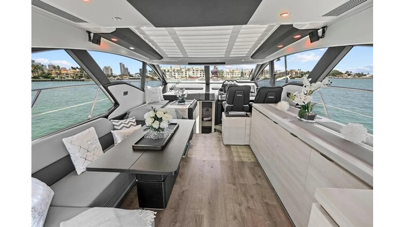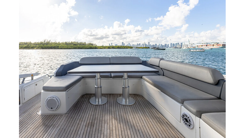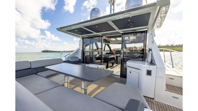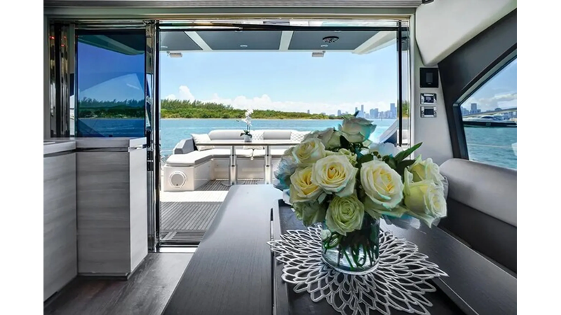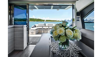 The 2015 Azimut 55S is the epitome of speed and sophistication. Powered by 3 Volvo Penta IPS 600 engines, this vessel delivers the ultimate sporty experience. Lithium is sleek and impressive on the water. Her outdoor living spaces are expansive and include a wet bar, electric grill, and beautiful L-shaped seating area with a modern table. Inside, the main salon is elegant and contemporary. Design features include large panoramic windows, light washed hardwood floors, modern white and grey upholstery and accents, a comfortable seating area with a high and low dining table, main floor galley, and a retractable sunroof. At the bow there is a large and comfortable area for sunbathing. The vessel has three exquisitely appointed staterooms, each offering comfort, privacy, and modern heads. Lithium is both impressive and memorable, reminiscent of a coupé. She is the ideal yacht for a buyer looking for a contemporary and innovative yacht!