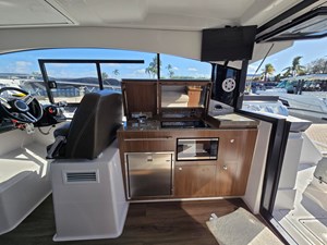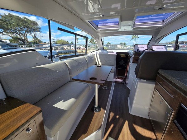 This stunning boat is a must see. Fully Loaded & like new, and the best priced unit on the market. Includes a SEAKEEPER GYRO STABILIZER (+$60k upgrade), and joystick docking. The upgraded Mercury 350HP Verados are still under warranty (and are upgraded from the standard 350hp engine. 126 hrs The Auto Glide trim tabs provide added stabilization. Also included are the premium electronics package, sky lights, mat grey sea decking in cockpit, side decks, & fore deck. Fusion stereo system with 3 zones, 4 JL Audio Speakers Private stateroom forward, and private stateroom aft. Extremely spacious for 35,’ lots of volume. Great for the Escape and day trips, or you can sleep the whole family.