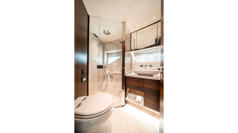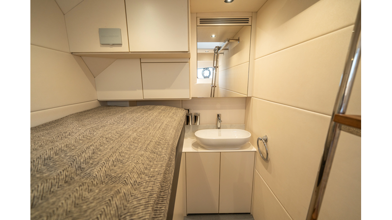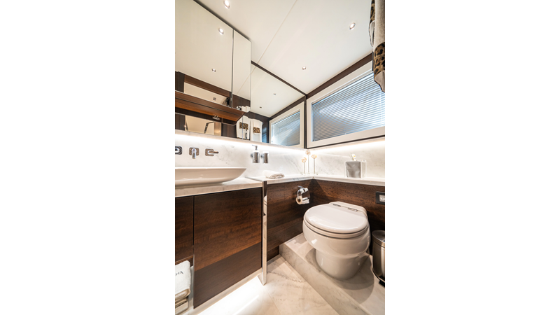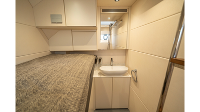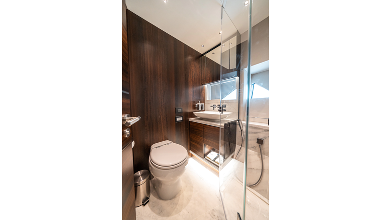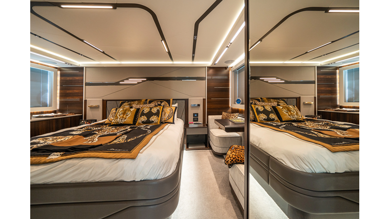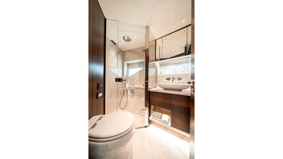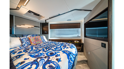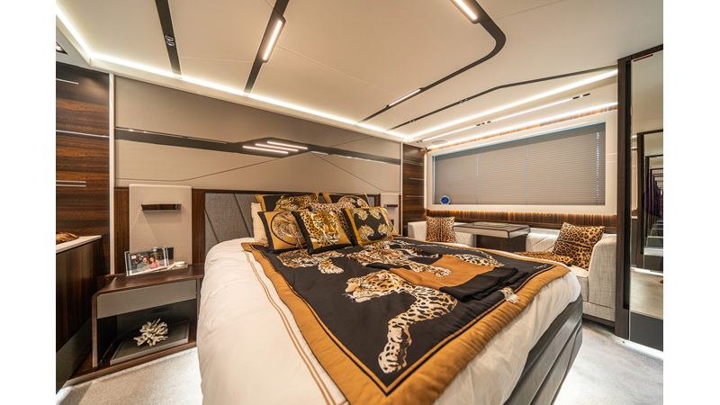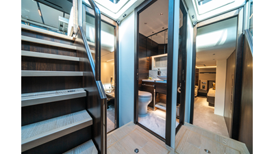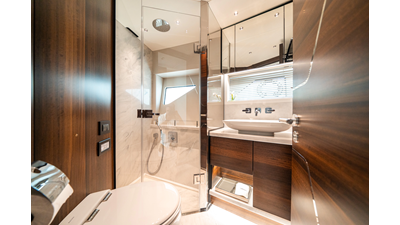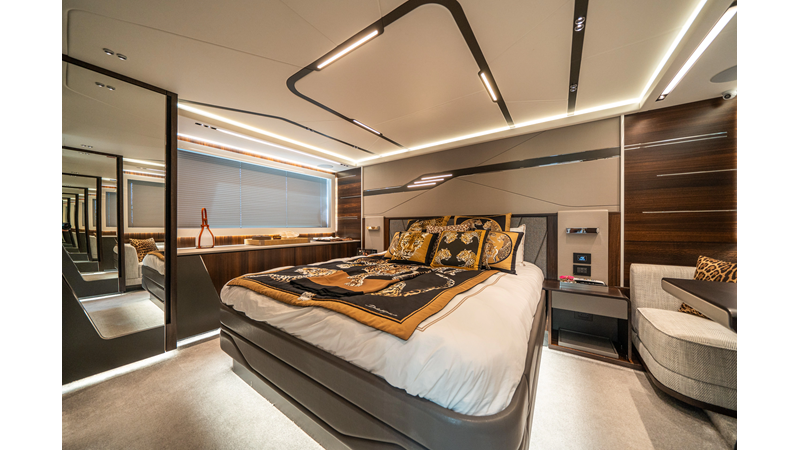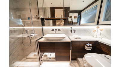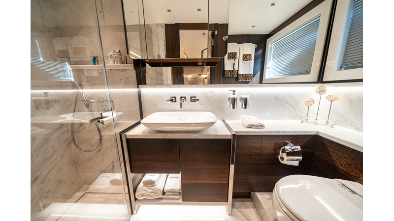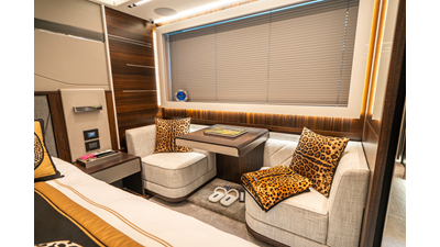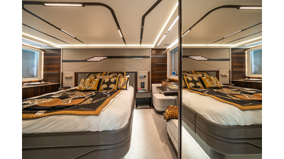She is powered by twin Volvo IPS 1350s, delivering smooth, efficient performance and top speeds up to 35 knots. Equipped with bow and stern thrusters, Dynamic Positioning System (DPS), and a Seakeeper stabilization system, this yacht ensures absolute comfort both underway and at anchor.