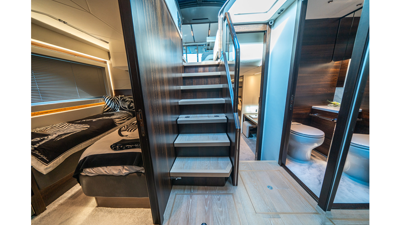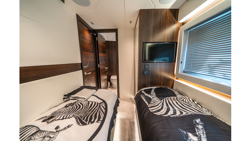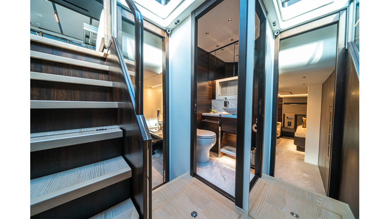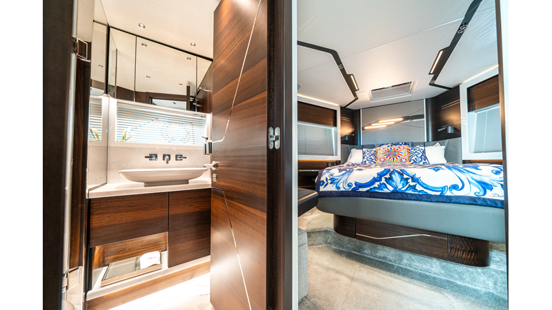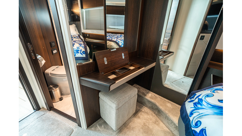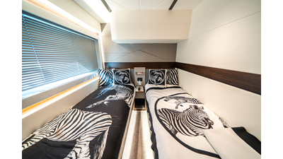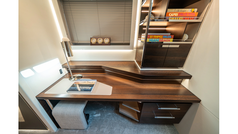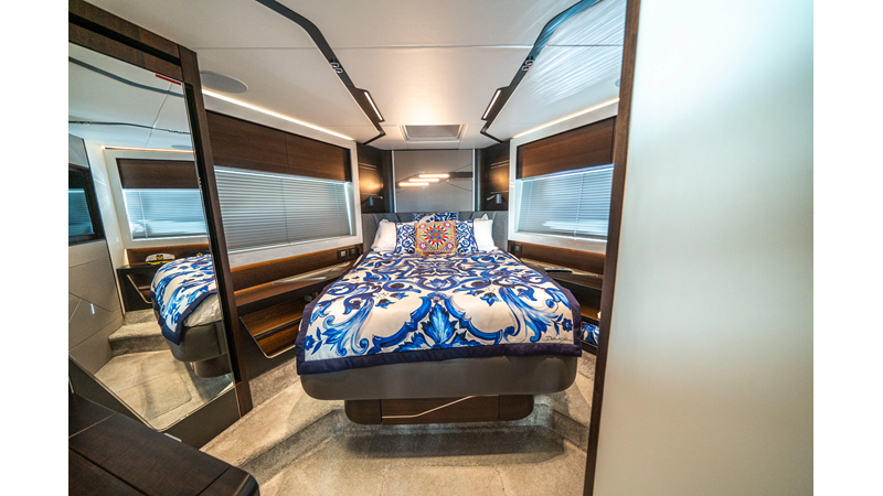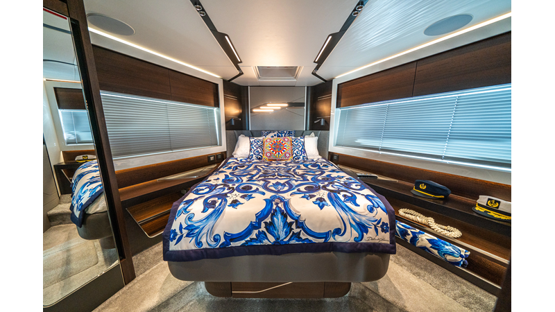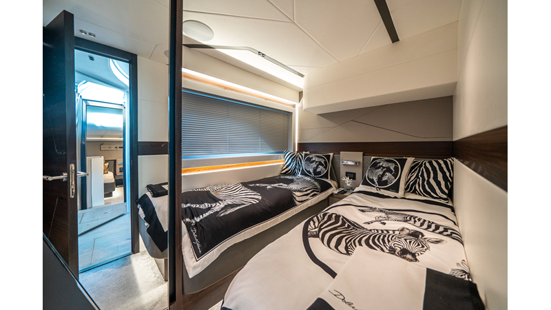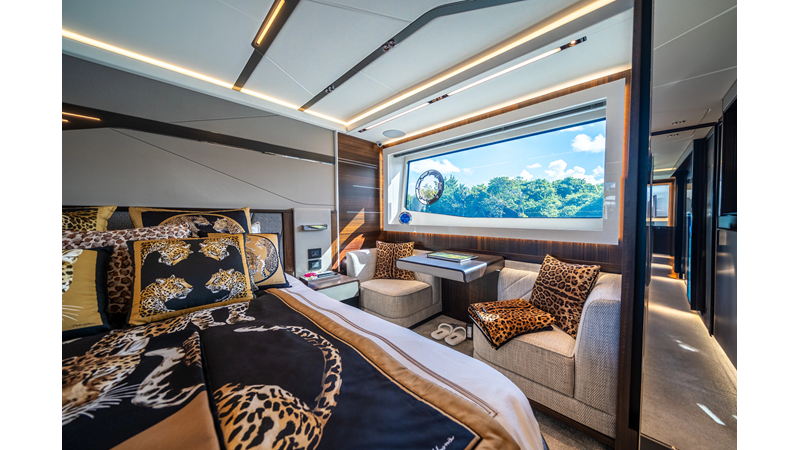 She is powered by twin Volvo IPS 1350s, delivering smooth, efficient performance and top speeds up to 35 knots. Equipped with bow and stern thrusters, Dynamic Positioning System (DPS), and a Seakeeper stabilization system, this yacht ensures absolute comfort both underway and at anchor.