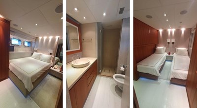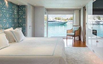 The Master Suite of Lucky Me motor yacht also features two balconies, that